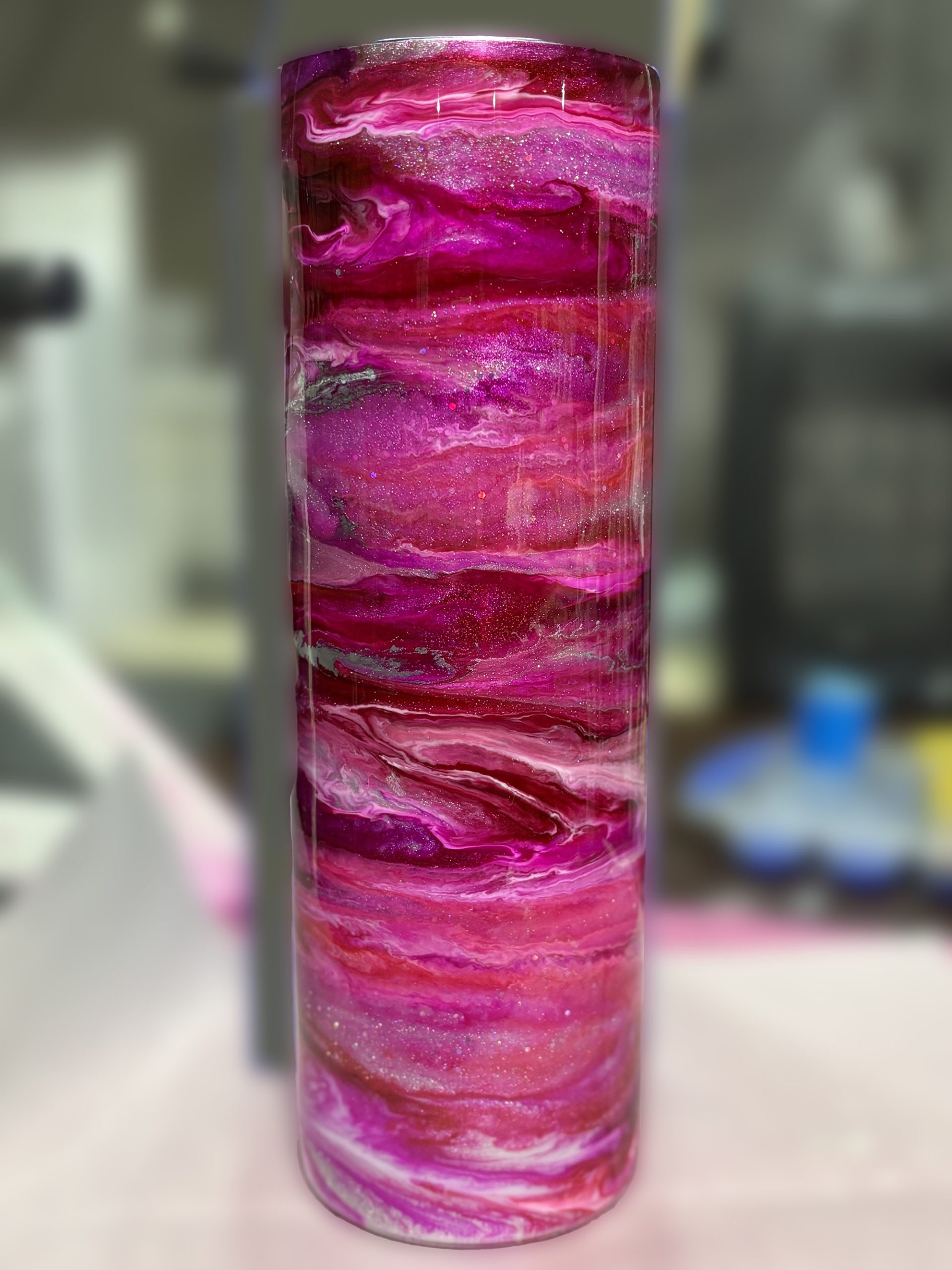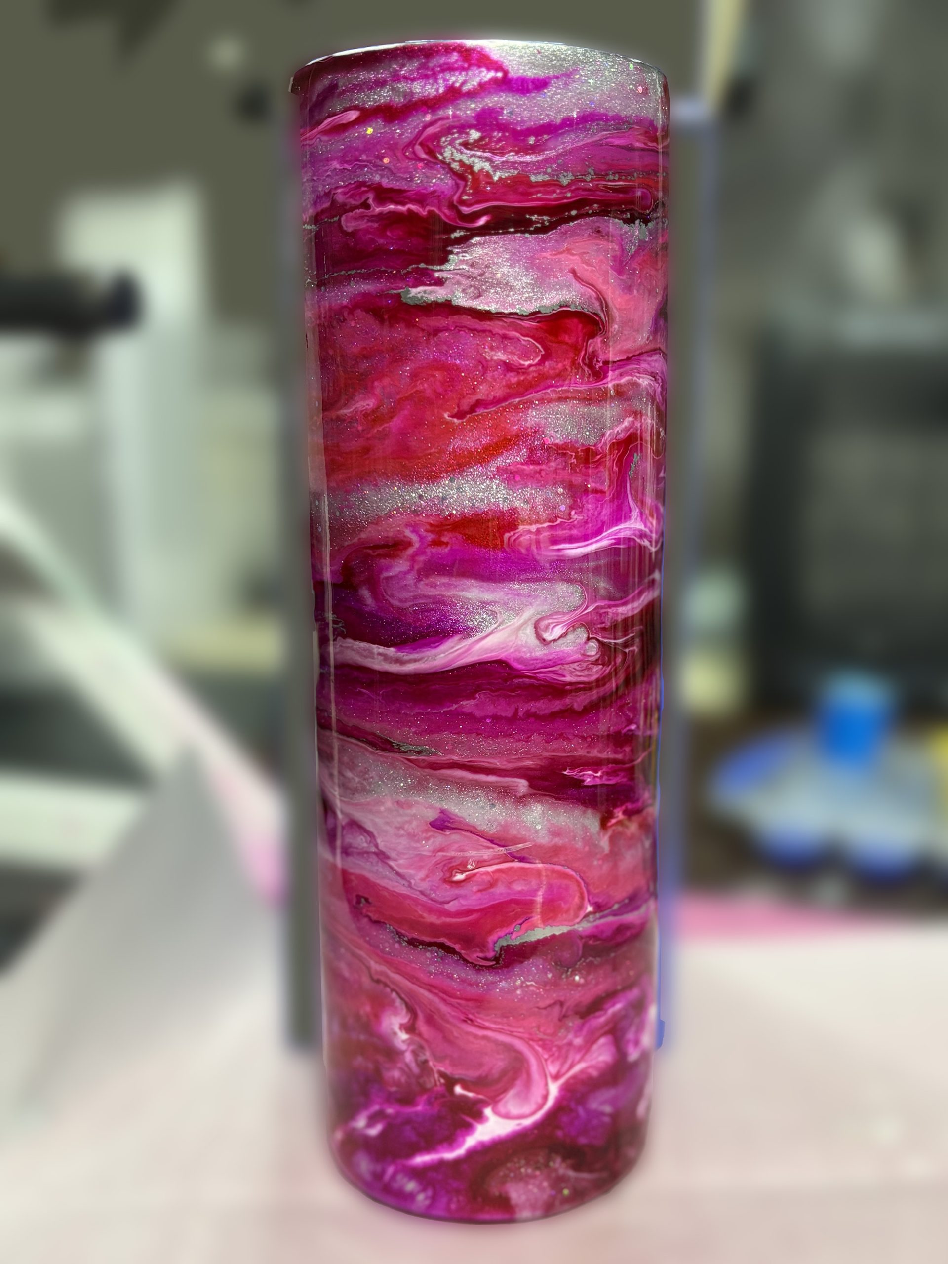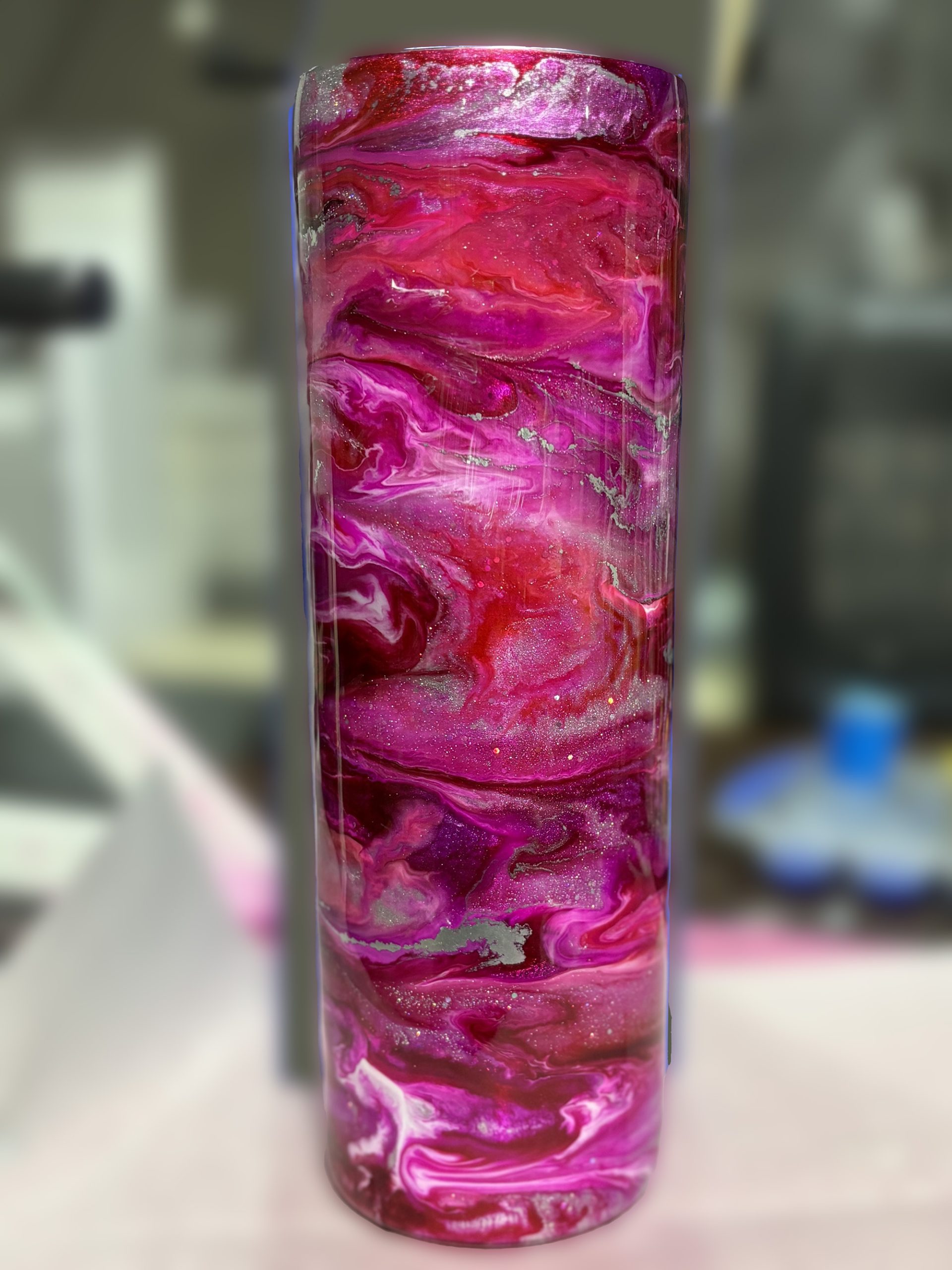 30oz Tall Skinny Alcohol Ink Tumbler with Lid and Straw